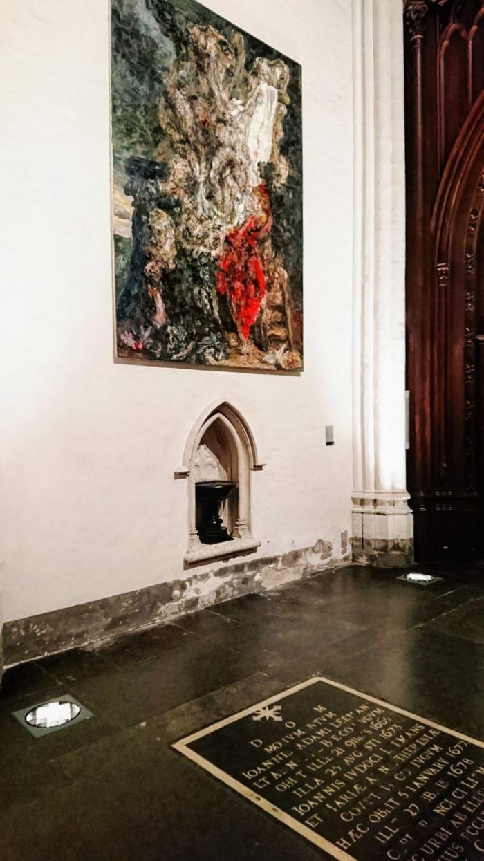 In de kathedraal van Antwerpen is een nieuw schilderij onthuld. Naast de bekende Kruisafneming van Rubens, hangt nu een moderne interpretatie van hetzelfde werk en op hetzelfde formaat, van de hand van Sam Dillemans.